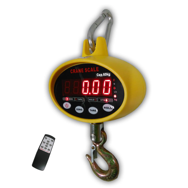 Elektroniczna waga hakowa o nośności 60kg przeznaczona do ważenia towarów wiszących.