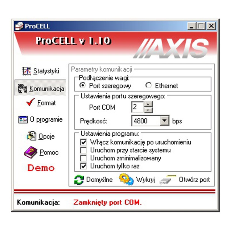 Połączenie z komputerem pozwala na korzystanie z dedykowanych programów komputerowych umieszczonych na stronie www.axis.pl. Rekomendowany do pracy w laboratorium program komputerowy Procell umożliwia bezpośrednie umieszczanie wyników ważenia w arkuszu kalkulacyjnym Excel i swobodną edycję raportów za pomocą komputera.